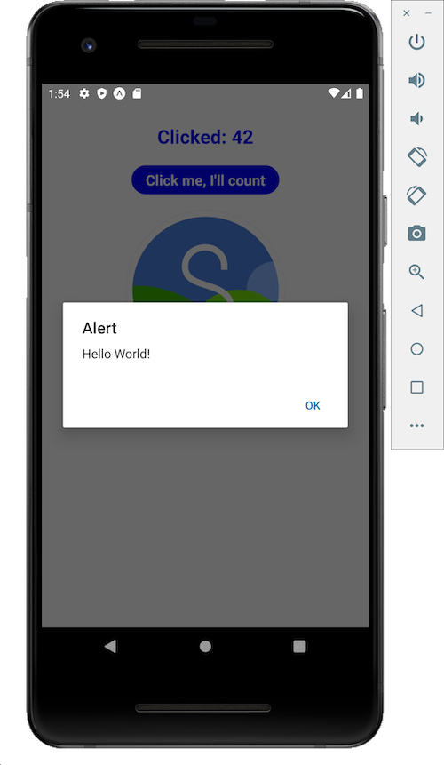 You should see the alert pop up where the app is running.